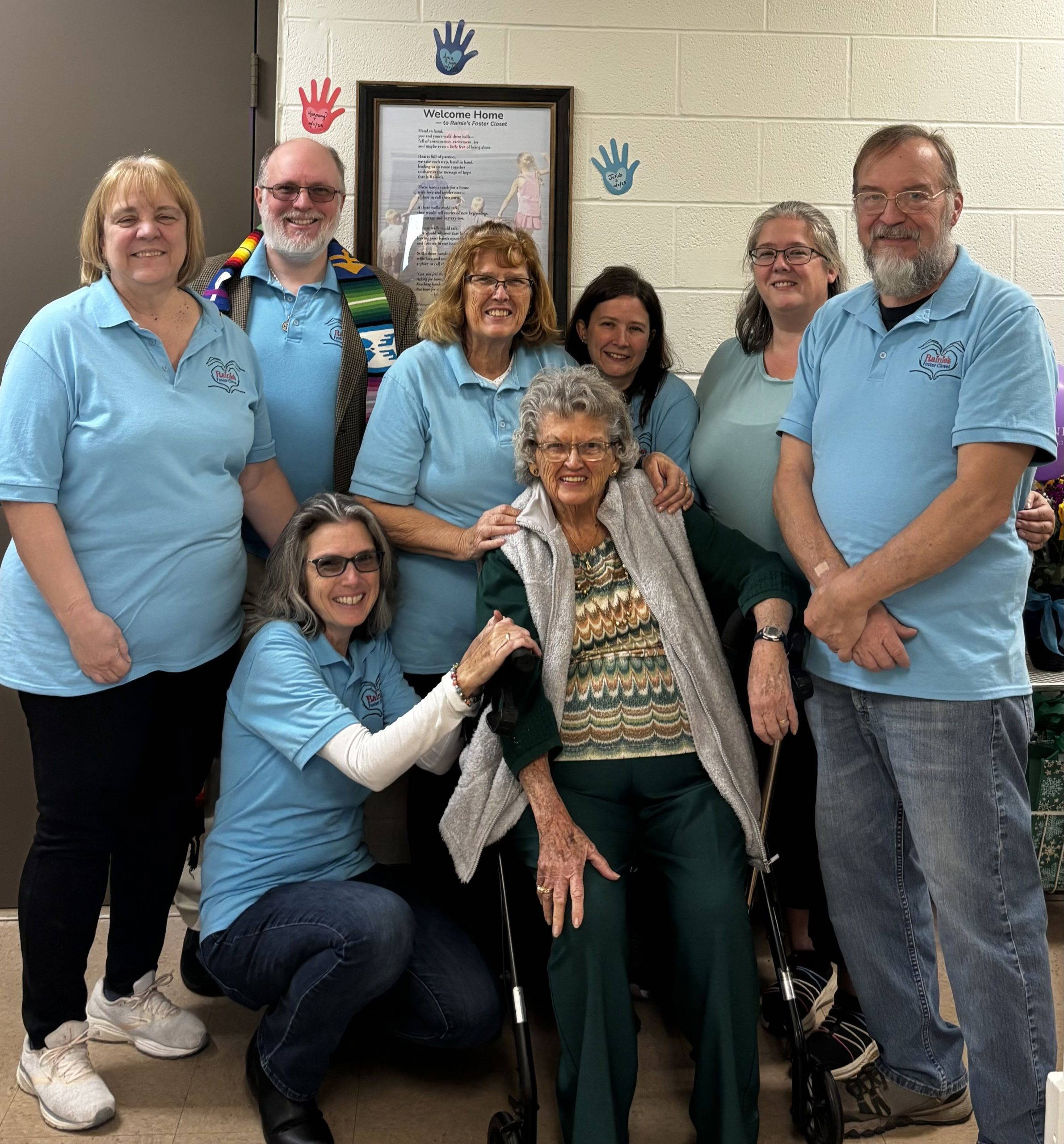 Shown here is the board, along with “Rainie” (namesake) and Brian Moeller (Board Liaison) – both instrumental in the success of the organization.